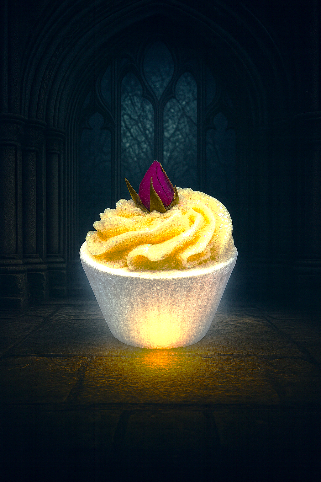 🌒 Dans les serres oubliées de L’Antre du Bien-Être, fleurit un fondant de bain en forme de cupcake, parfumé à la rose de Damas — une essence noble, ancienne, presque alchimique. Sa base effervescente libère lentement ses arômes floraux, tandis que sa crème à la pomme, enrichie en beurres de karité et de cacao, enveloppe la peau d’un voile nourrissant et protecteur.