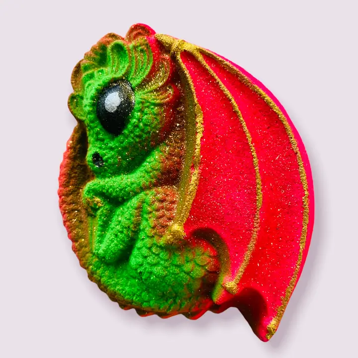 Dès que la bombe touche l’eau, le dragon s’éveille dans un tourbillon mystique 🌑, pétillant comme un feu sacré et colorant l’eau de ses secrets arc-en-ciel 🌈. Des volutes de rose, de bleu et d’or s’élèvent en dansant, tandis que la créature te murmure des récits de nuages parfumés et de royaumes moelleux.