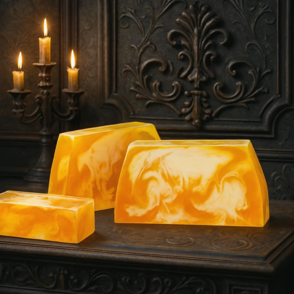 Forgé à partir de glycérine végétale pure, ce savon honore l’équilibre naturel de la peau, la purifie avec la délicatesse des brumes nocturnes et l’enveloppe d’une hydratation profonde, mystère doré de la nuit.